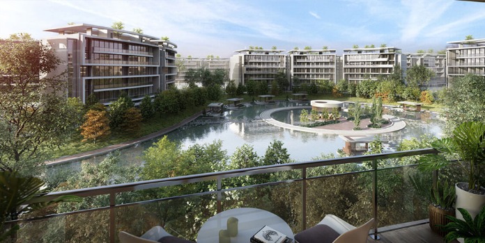 - واجهات المباني السكنية في ليك فرونت معمار المرشدي المطلة على المساحات الخضراء والبحيرات الصناعية تضمن للسكان الهدوء والاستجمام.